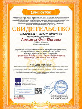 Презентация Мастер -класса "Рискованное поведение подростков или Я люблю тебя ЖИЗНЬ". ПОДРОБНЕЕ...